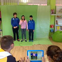 Then, they practised until being ready and recorded themselves using the green background. Once they recorded each other, they worked on their videos, using the chroma effect and a video editor.